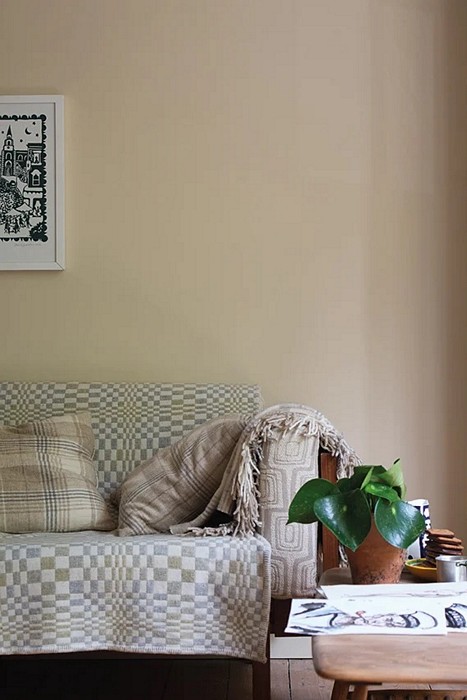 Une couleur crème moderne fraîche qui fonctionne à merveille dans les pièces orientées au nord, où ses nuances légèrement rouges apportent juste la bonne quantité de chaleur.