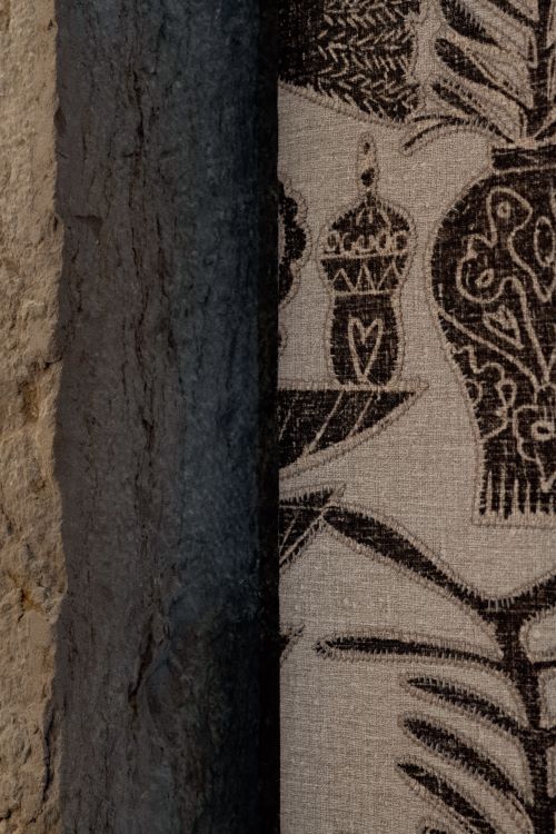 Enjoué, vif, extraverti... Le lin prend ses aises et se façonne une nouvelle personnalité au fil de broderies naïves et exubérantes. Dans sa voix, on décèle des sons bruts et artisanaux, des accents toniques et chaleureux, instinctivement naturels. Une interpellation colorée qui réveille l'imaginaire en sursaut !